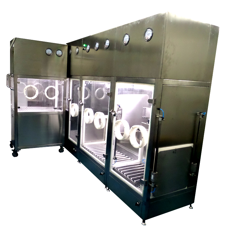 ·操作門采用10mm鋼化玻璃鉸鏈安裝 、隔離門采用費斯托無桿氣缸提升門自動控制,保證每個區(qū)對外和各區(qū)之間均保持10-15Pa壓差,采用美 國 諾斯or Piercan海普龍手套,防止污染和確保藥粉操作環(huán)境。系統(tǒng)配套本公司DM200A6手套在線全自動測漏儀進行安全檢漏測試